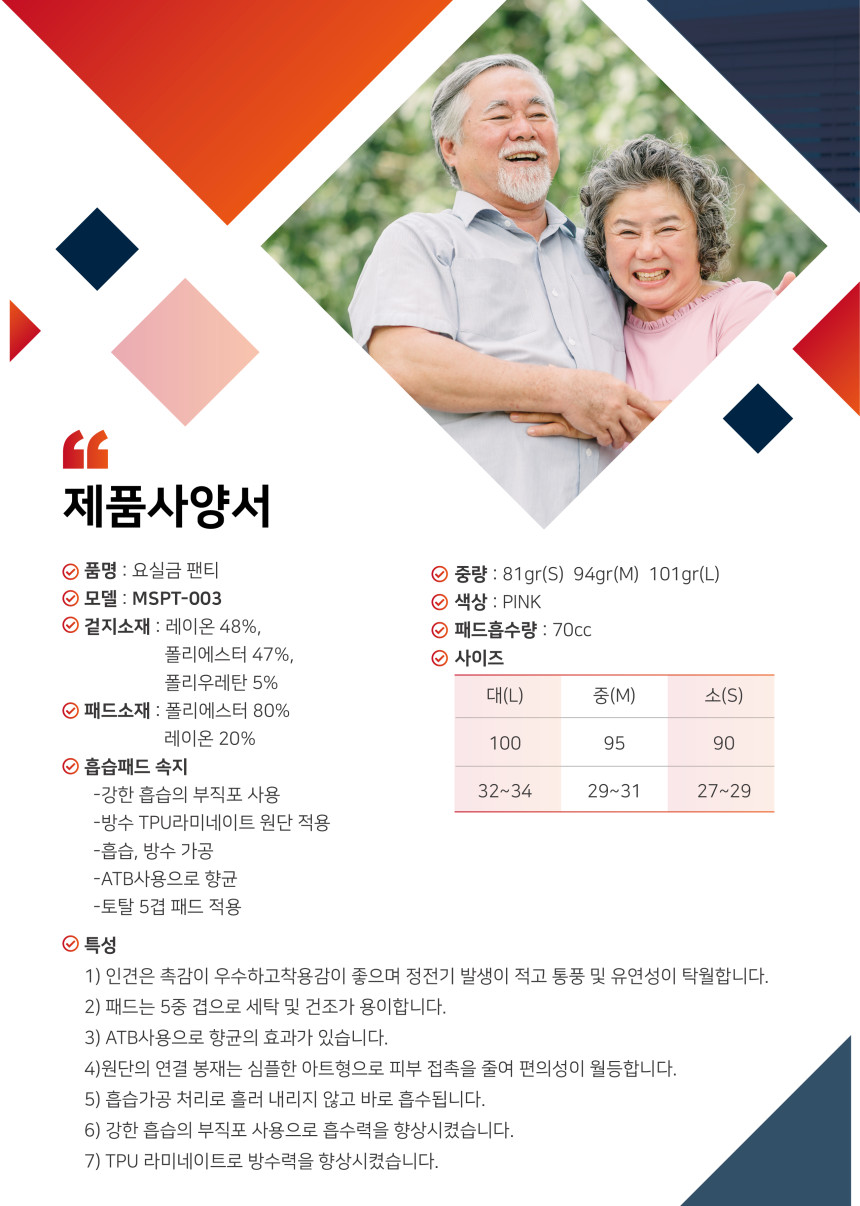 복지용구 요실금팬티 MSPT-003 노인 실버용품 여성용 요실금속옷 70cc